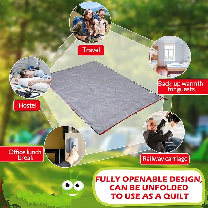 • Use in All Seasons: there is a layer of space cotton in the middle of our sleeping bags for adults,soft,thick yet lightweight, without bulky feelings to you,which can keep you warm in various outdoor activities in spring, summer, autumn and winter; Let you relax and sleep sweetly after various sports