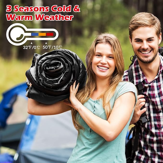 • Quality Material: our camping sleeping bags are made of quality polyester cloth, which is not easy to tear or fade, strong and reliable; You'll be comfortable and warm no matter how hard and rough the ground is; They're weatherproof,designed to keep you warm even in extreme conditions and avoid dampness, providing you with protection in a variety of climates
