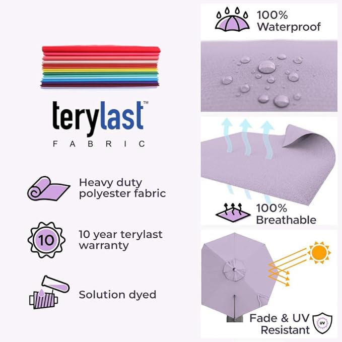 Midtown Umbrellas 10 Ft Outdoor Cantilever Patio Umbrella w/Terylast Midtown Purple Fabric - Tilt 360° Offset Patio Umbrella, Deck Patio Umbrella, Backyard Umbrella & Garden Umbrella - Black Frame