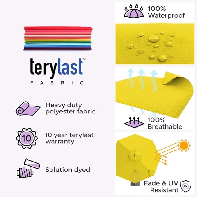 • [ WARRANTY ]: 10 year warranty on the Midtown 10 ft umbrella outdoor patio frame along with 10 year warranty on the Terylast fabric.
