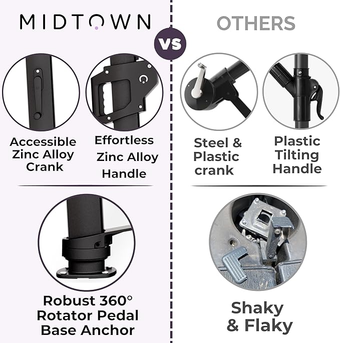 • [ WARRANTY ]: 10 year warranty on the Midtown 10ft umbrella outdoor patio frame along with 5 year warranty on the Sunbrella fabric.