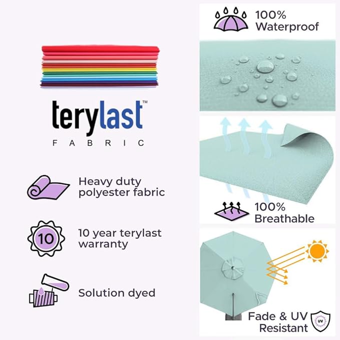 • [ WARRANTY ]: 10 year warranty on the Midtown 10 ft umbrella outdoor patio frame along with 10 year warranty on the Terylast fabric.
