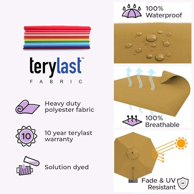 • [ WARRANTY ]: 10 year warranty on the Midtown 10 ft umbrella outdoor patio frame along with 10 year warranty on the Terylast fabric.