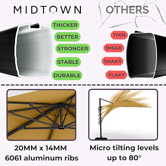 • [ DURABILITY ]: Our custom cantilever patio umbrellas ribs ensure resistance to high and strong winds.