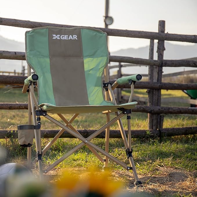 XGEAR Camping Chair Hard Arm High Back Lawn Chair Heavy Duty with Cup Holder, for Camp, Fishing, Hiking, Outdoor, Carry Bag Included