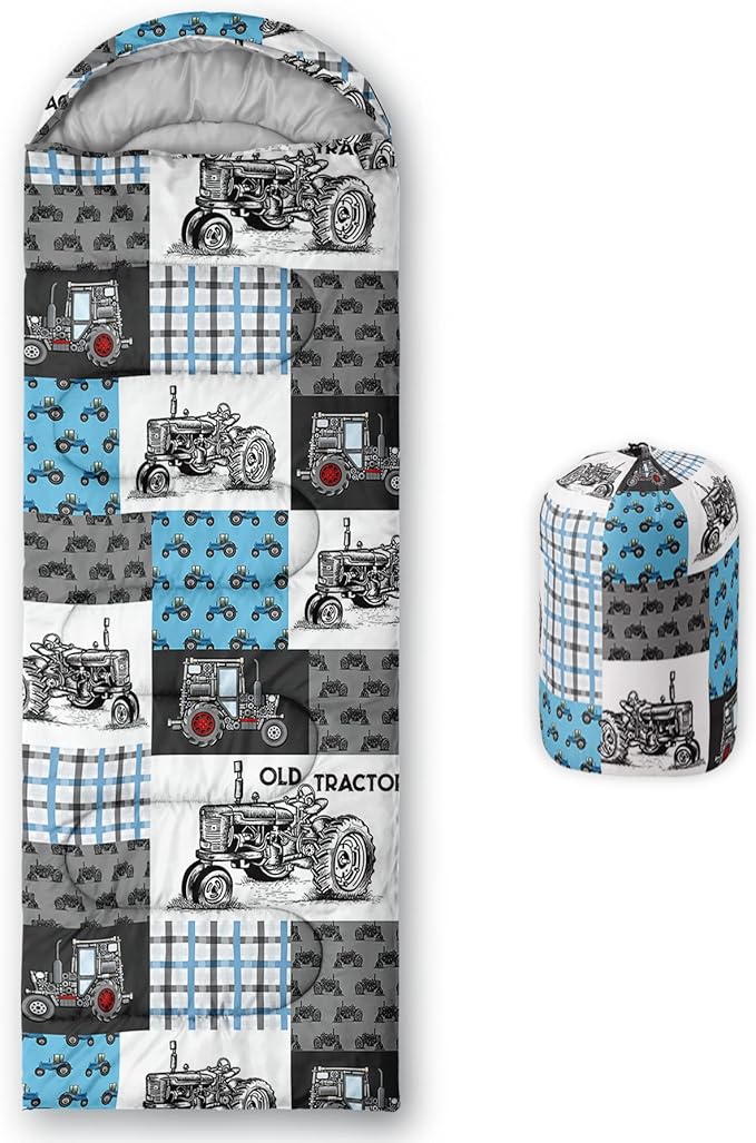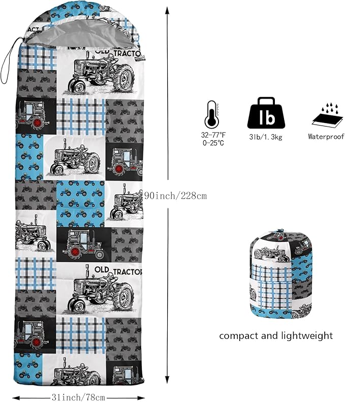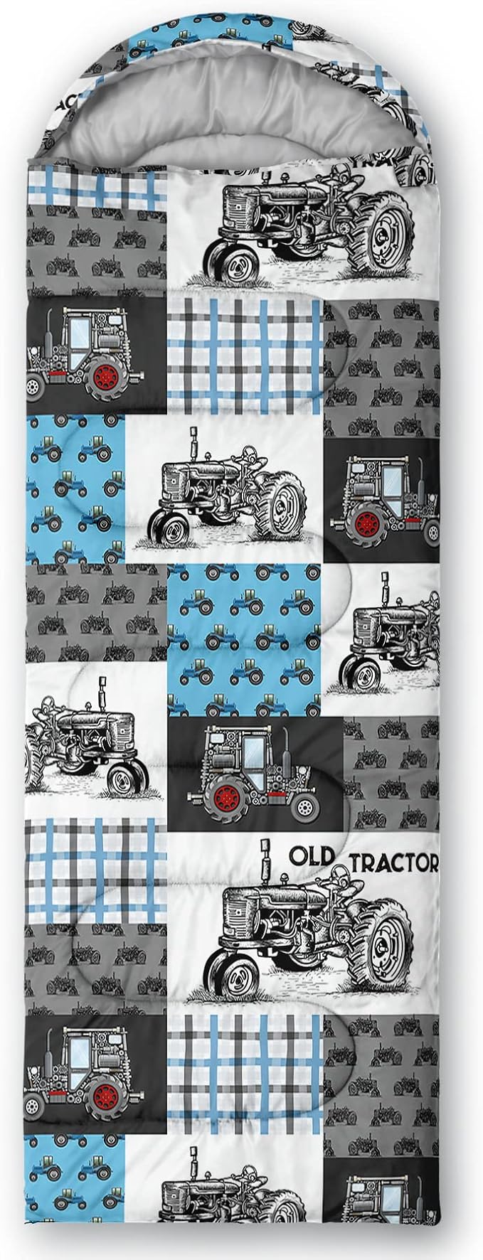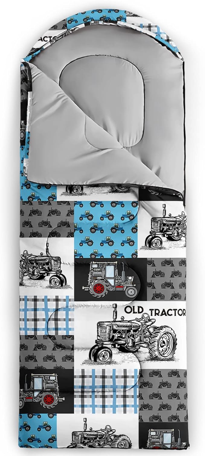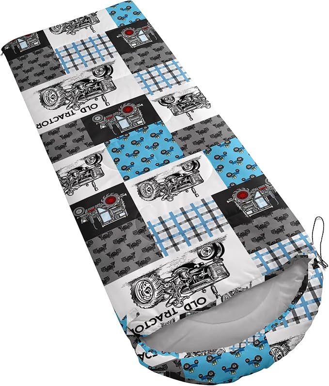 • A THOUGHT OUT DESIGN: Drawstring allows you to tighten hood and keep you warm. The idea of having a zipper at the foot to allow more warm or cool air to enter or exit the bag in different times of the season.Our Old Tracto Truck sleeping bags are designed to provide much needed rest after a full day of outdoor activities.