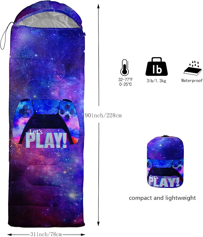 • A THOUGHT OUT DESIGN: Drawstring allows you to tighten hood and keep you warm. The idea of having a zipper at the foot to allow more warm or cool air to enter or exit the bag in different times of the season.Our Star Sky Gamer sleeping bags are designed to provide much needed rest after a full day of outdoor activities.