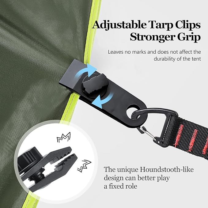 • [Multipurpose Usage]:Multipurpose Suction Cup Hooks can hang almost anything,towels, toys, bath robes, squeegees, kitchen tools etc.New set come with 4 pcs high quality tarp clips,more suitable for outdoor travel,Truck Camping,Suv Tent, etc., very suitable for family picnic and outdoor activities.