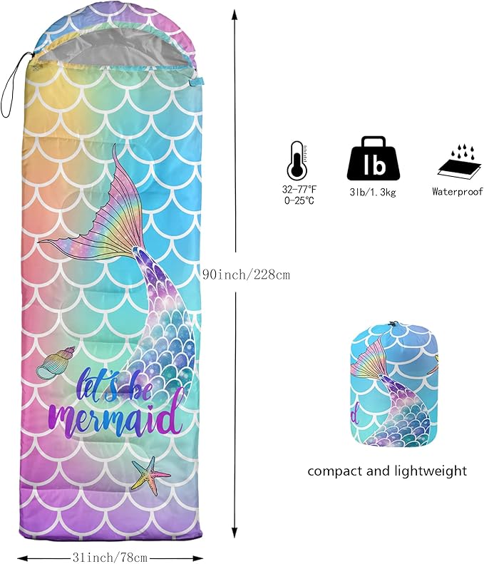 • Special Feature : Unique mermaid print design, waterproof, lightweight, compact, adjustable foot zipper