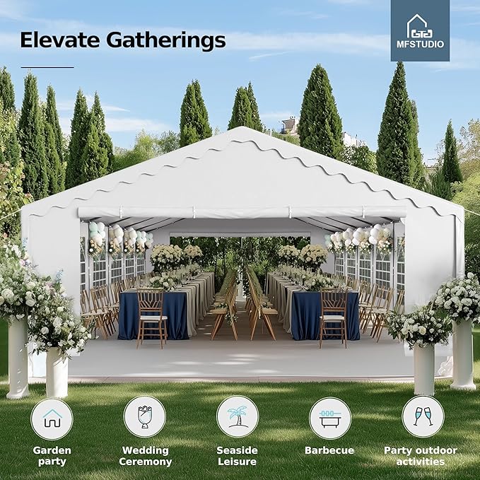 MFSTUDIO 20'x40' Party Tent, Outdoor Heavy Duty Party Tents with Removable Sidewalls, Large Canopy Tent Shelter for Outdoor Events Wedding Birthday, White