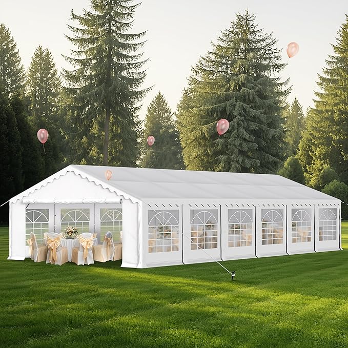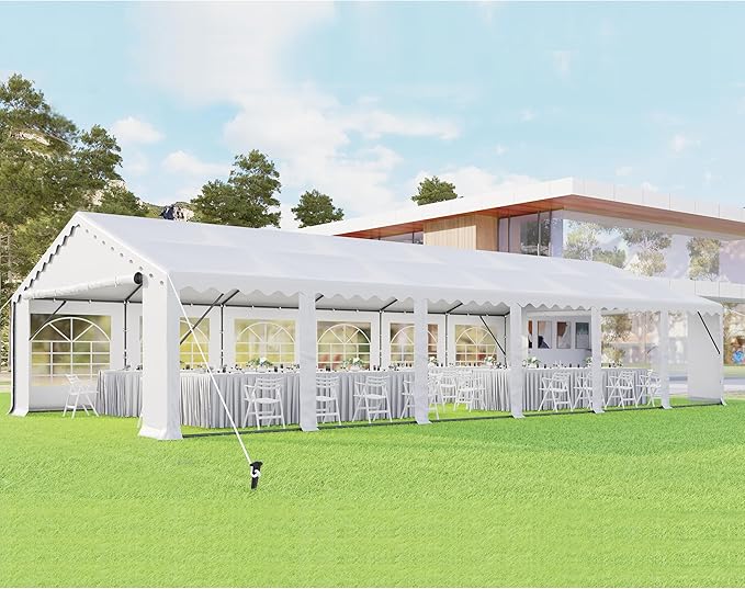 • Versatile Functionality: Tents for parties perfectly combines practicality and fashion. Featuring ample space no matter your needs, our large party tent offers you options. Place it outside as an area for wedding receptions, graduation parties, or a big backyard barbeque. (Please do not use it when the wind is strong)