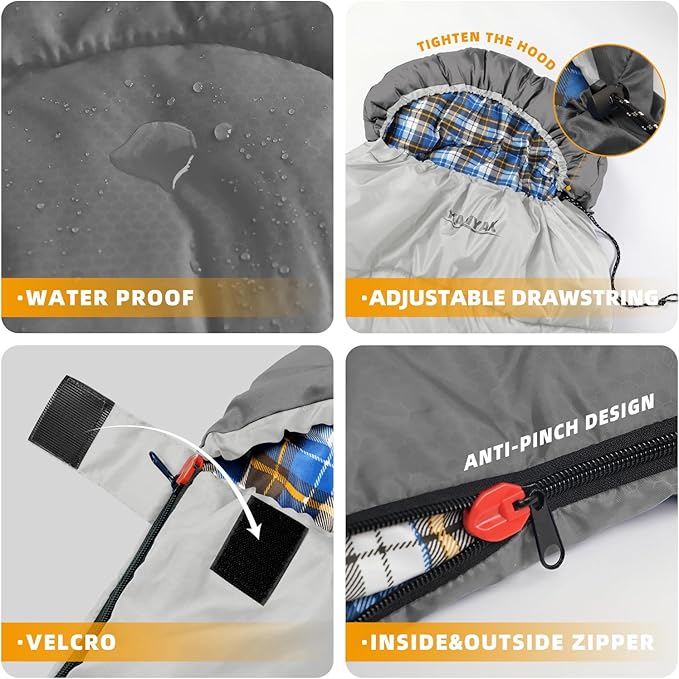 • SAFE AND SECURE, GUARD YOUR DREAMS -- Our attention to detail design, high quality zippers and solid stitching process ensure the durability and safety of sleeping bags. You can relax in your dreams and enjoy a worry-free outdoor adventure.