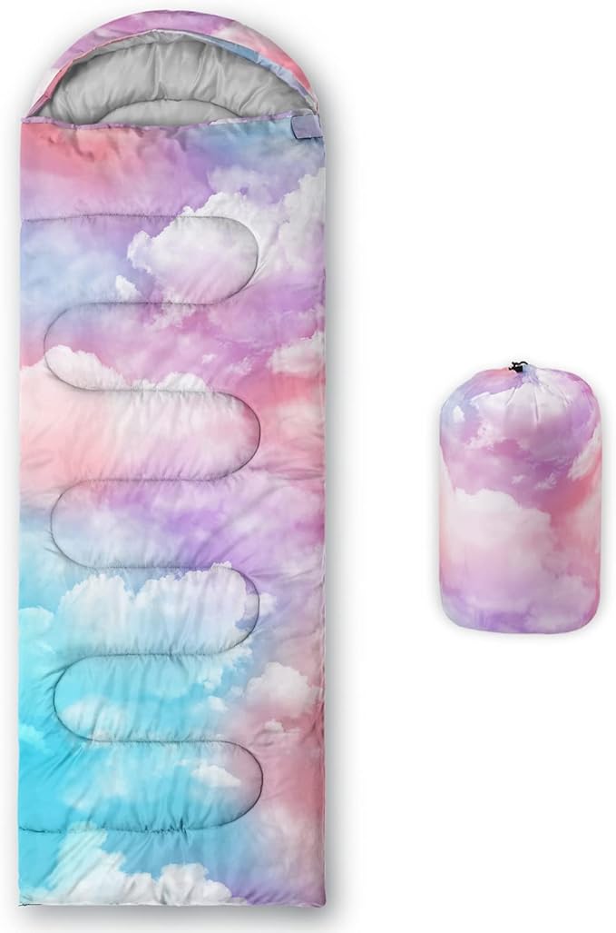 • A THOUGHT OUT DESIGN: Drawstring allows you to tighten hood and keep you warm. The idea of having a zipper at the foot to allow more warm or cool air to enter or exit the bag in different times of the season.Our Color Cloud sleeping bags are designed to provide much needed rest after a full day of outdoor activities.