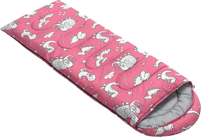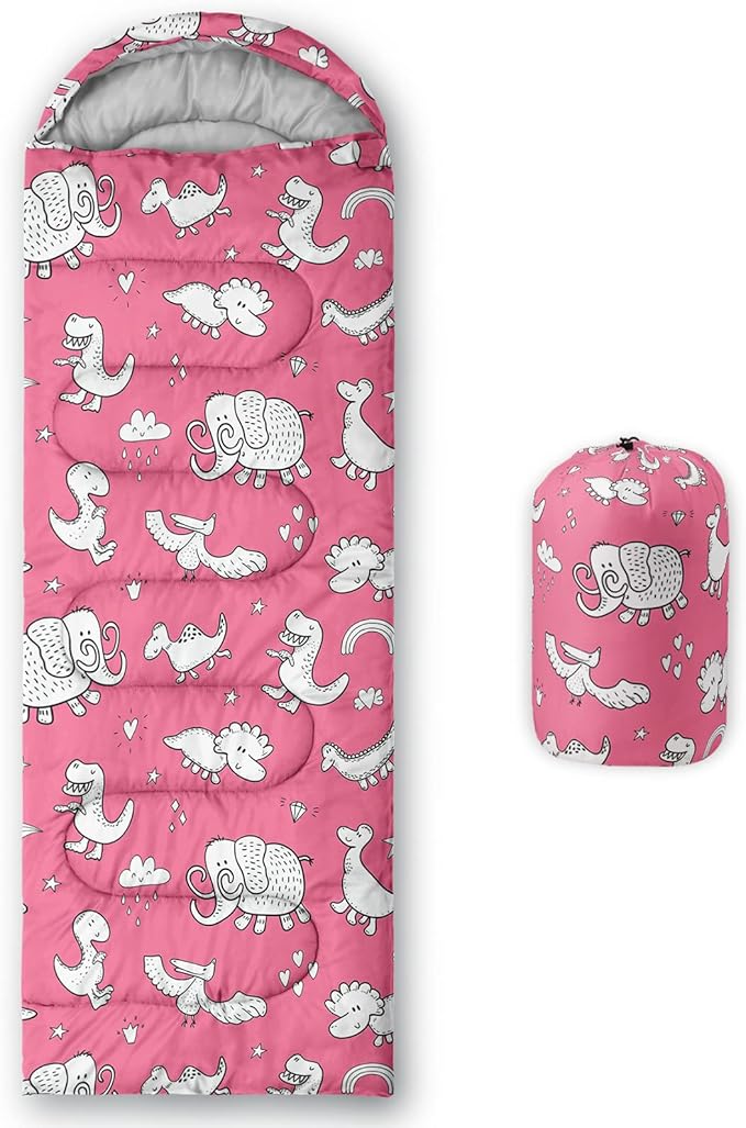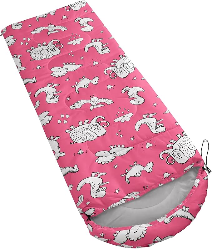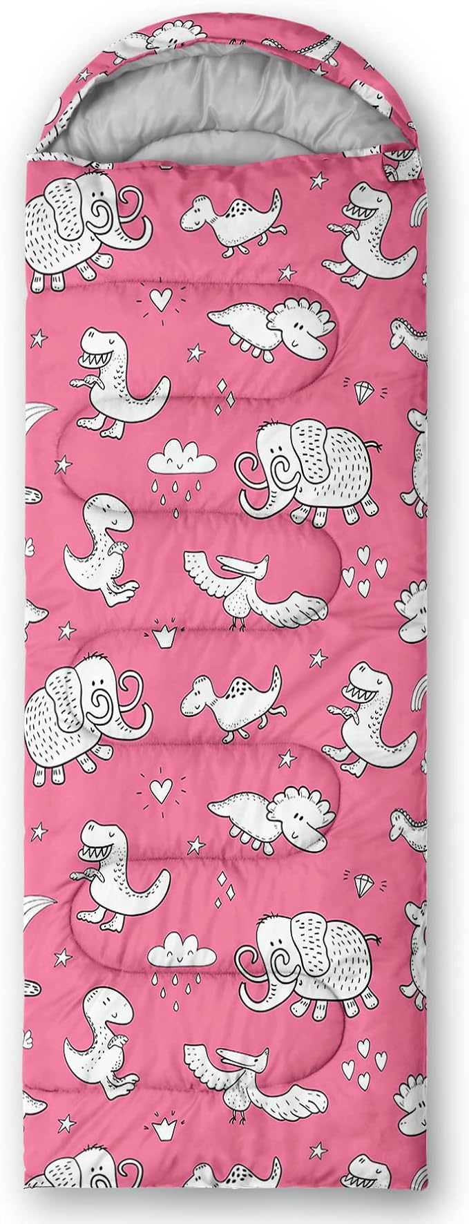 • A THOUGHT OUT DESIGN: Drawstring allows you to tighten hood and keep you warm. The idea of having a zipper at the foot to allow more warm or cool air to enter or exit the bag in different times of the season.Our Pink Dinosaur sleeping bags are designed to provide much needed rest after a full day of outdoor activities.