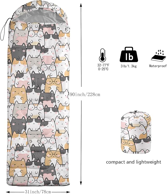 • FITS FOR 3 SEASONS: SIZE - 31 by 90 inches (W x D). Our sleeping bag can be used in 3 seasons with a design temperature of 32℉-77℉(0℃-25℃). These bags also have a weather resistant waterproof design to keep you warm and prevent you from any dampness.