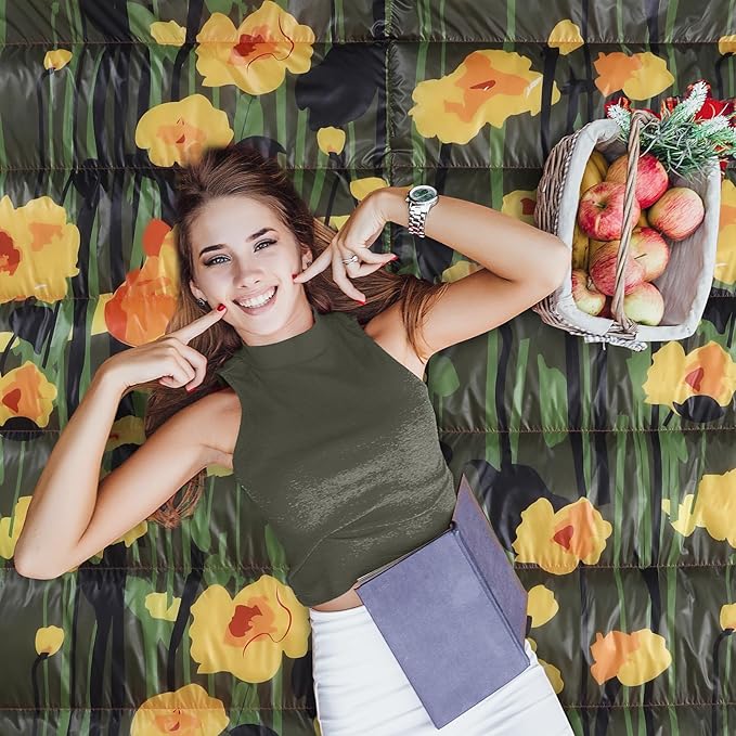 APSMILE Outdoor Down Blanket | Extra Warm & Puffy Camping Blanket | Water-Resistant, Lightweight, Packable Sleeping Quilt for Camp, Travel, Hiking, Picnic, Backpack (Bouquet HD Printed, 52"x75")