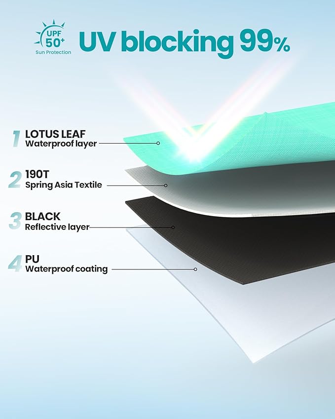 • Blackout Shelter Technology: Our Instant Shade Blackout Shelter is different from others on the market as it not only blocking 99.95% of UVA and UVB rays (UPF 50+), also eliminates 95% sunlight to protect your skin and objects for a more comfortable rest anytime of day