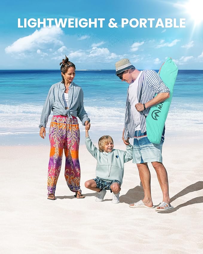 • 9.5MM Thickened Rods & 190T Material: We increased the thickness of the rods from 8.0mm (market standard) to 9.5MM and made with 190T Spring Asia Textile, this beach tent sun shelter is more rugged than other lower ones thus handle the wind firmly and stable without breaking or tearing