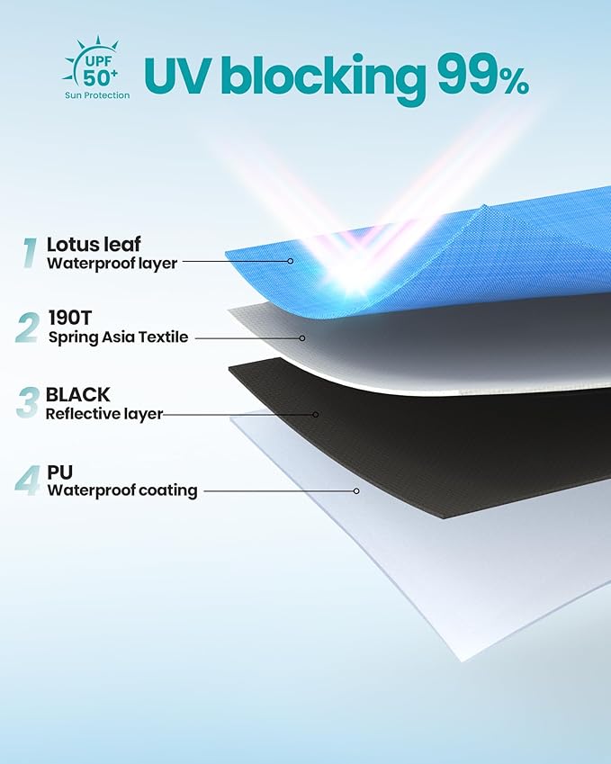 • Blackout Shelter Technology: Our Instant Shade Blackout Shelter is different from others on the market as it not only blocking 99.95% of UVA and UVB rays (UPF 50+), also eliminates 95% sunlight to protect your skin and objects for a more comfortable rest anytime of day