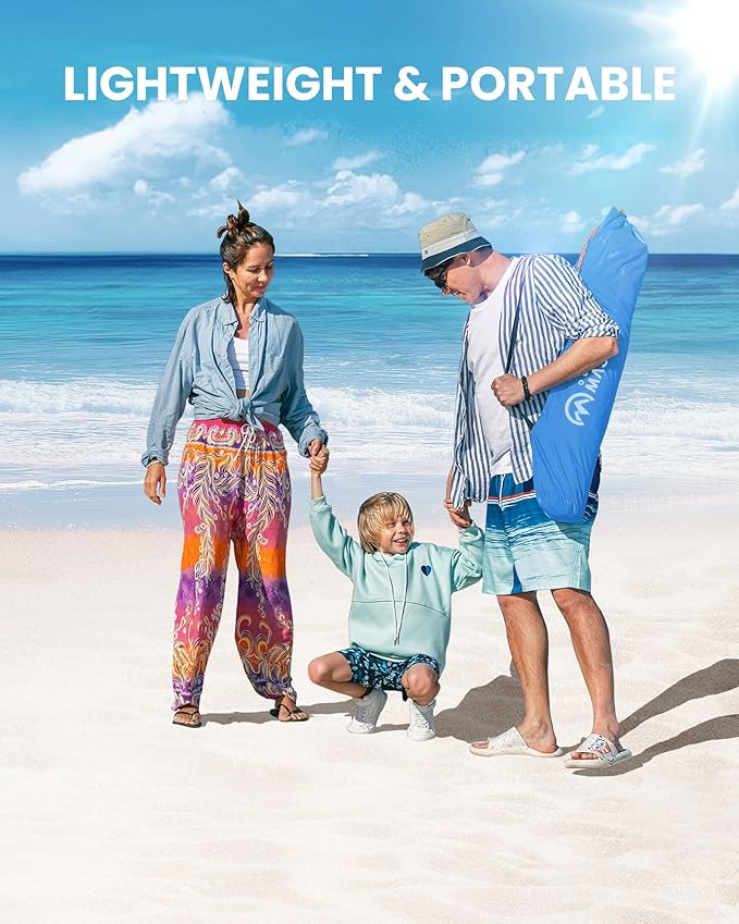 • 9.5MM Thickened Rods & 190T Material: We increased the thickness of the rods from 8.0mm (market standard) to 9.5MM and made with 190T Spring Asia Textile, this beach tent sun shelter is more rugged than other lower ones thus handle the wind firmly and stable without breaking or tearing