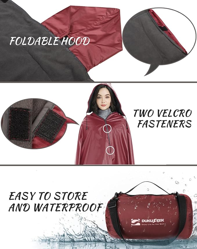 • βœ… π—¦π—§π—”π——π—œπ—¨π—  π—•π—Ÿπ—”π—‘π—žπ—˜π—§ π—ͺπ—œπ—§π—› π—¨π—‘π—œπ—€π—¨π—˜ π—›π—’π—’π——π—˜π—— π——π—˜π—¦π—œπ—šπ—‘οΌšThe DUKUSEEK outdoor waterproof stadium blanket for cold weather has an adjustable hood, which can be easily unfolded and converted into a poncho and cloak in rainy days. And it comes with a stuff sack for easy carrying and storage.