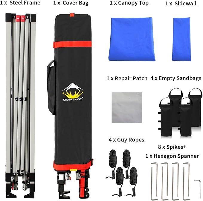 • FAST CLIP CANOPY FABRIC - Our innovative clip system quickly secures the canopy to the frame.The silver-coated interior offers UPF 50+ protection for a cooler, safer shade. Durable 150D fabric makes the tent water and flame-resistant (CPAI-84). The Fast Clip system prevent wind lift and rain pooling, reducing fabric tearing risks. The included 150D sidewall adds side sun protection. Perfect for outdoor events, this design ensures easy setup and durability