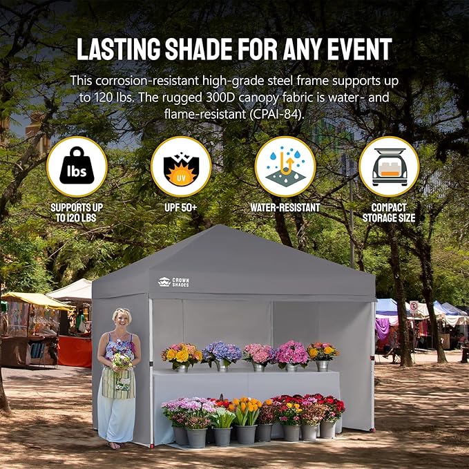 CROWN SHADES 10X10 Comercial Instant Canopy Pop Up Tent with Center Lock (10x10 with 4 Sidewalls, Grey)