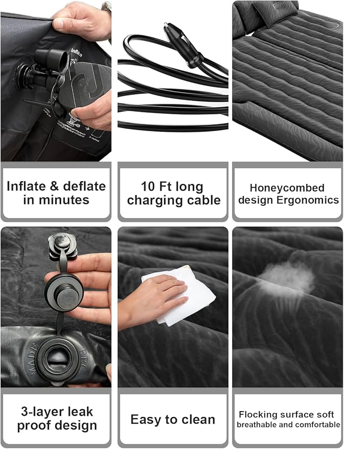 • Versatile & Convenient Design: Featuring a 6-chamber construction, this air mattress is perfect for use in SUV trunks, car backseats, camping tents, travel, and even beach outings. It adapts to various settings, offering ultimate flexibility.