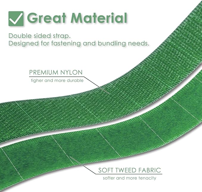 • Great Material - Our product is made of nylon material, it is non-toxic and not easy to fluff. The product is double sided strap, for one side is nylon hook, and another side is soft surface. The double-sided ties are designed for fastening and bundling needs.