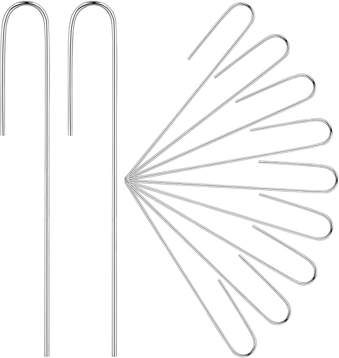 • Easy to Install: the long side of the ground stakes is about 5 inches, and the short side is about 2 inches, different lengths and 1 long prong make these landscape staples easy to use; Stick the drip hose staples in the drip tubing and push them into the soil