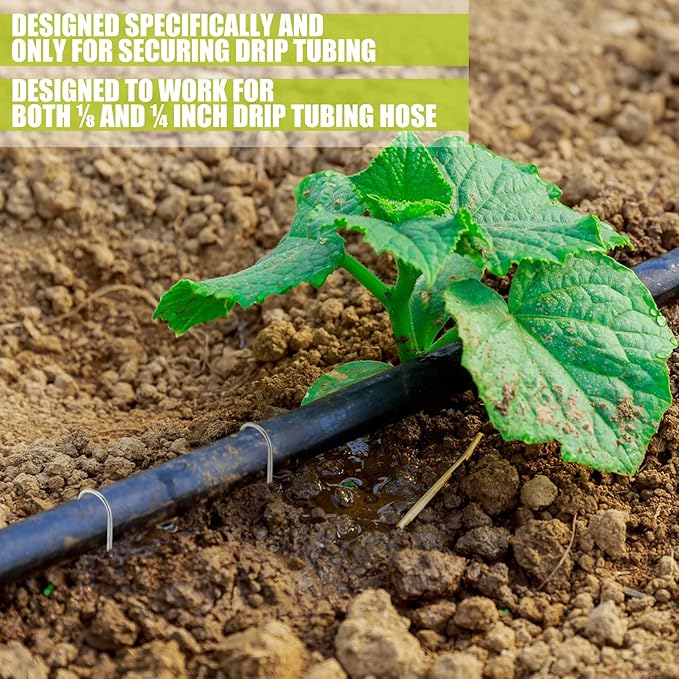 • Unique Design: the lawn staples featuring J shape are designed for irrigation drip tubing fixing, the rounded top with a 1/2 inch wide opening is very suitable for holding a 1/2 inch, 1/4 inch, or 1/8 inch drip line, can secure the drip line anywhere you need it