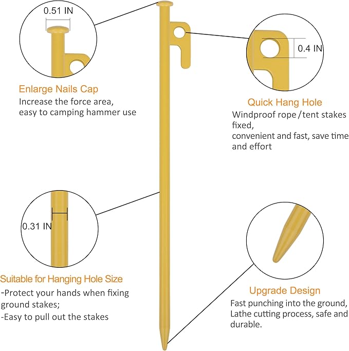 • 【Strong Holding Power】The large head and sharp end of the nail make it easy to penetrate hard or rocky ground, in case of hurt yourself when use them