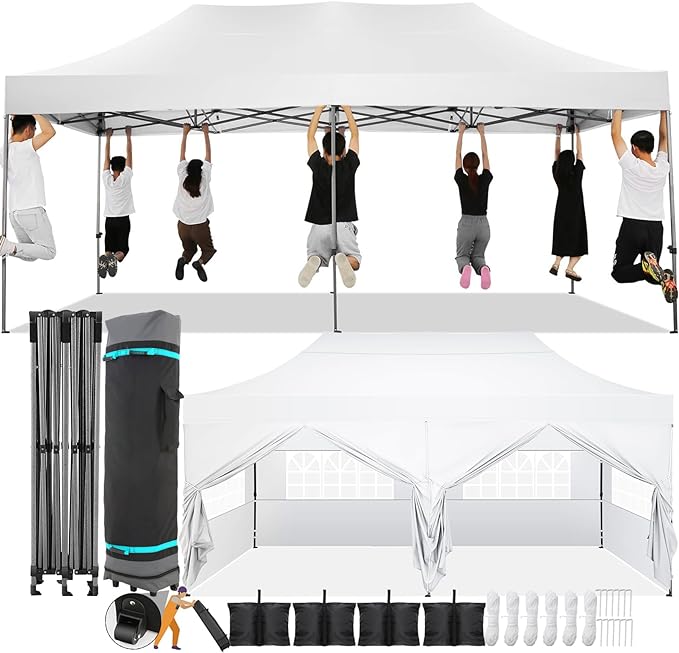 COBIZI 10x20 Pop Up Canopy with 6 Sidewall,Heavy Duty Canopy UPF 50+ All Season Wind Waterproof Commercial Outdoor Wedding Party Tents for Parties Canopy Gazebo with Roller Bag(10 x 20 ft White)