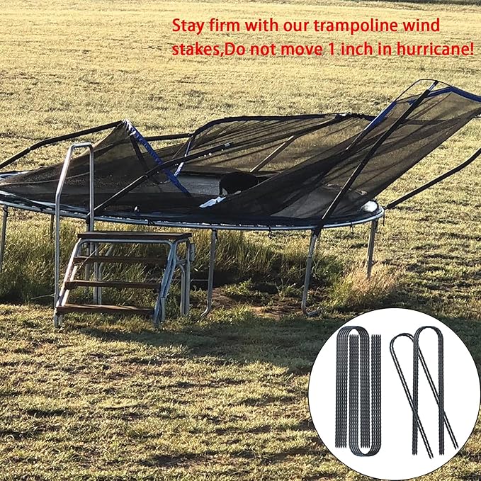 • 【MULTIPLE USES】These trampolines ground stakes help stabilize your kids' or adults' trampoline, soccer goals, camping tents, swing set, hammock, huge Christmas outdoor decoration, fences, tarps, garden cloth, hoses and more.
