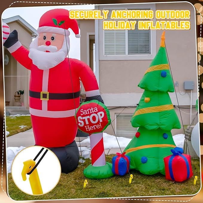 • Proper Size to Use: each plastic stake is about 9 inches in length, proper for you to use, and will not take up much space, convenient for you to store and carry out, providing you with pleasant use experiences; The reliable stakes ensure your Christmas inflatables stay put all season long; They are ideal for replacing inferior stakes that came with tents, lighted sculptures, Christmas yard decorations