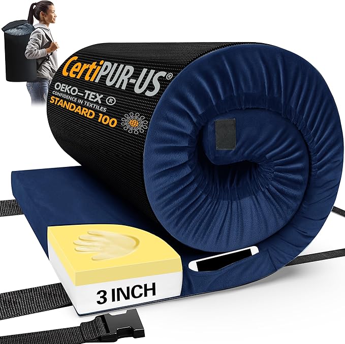 CYMULA CertiPUR-US Memory Foam Camping Mattress Pad, Portable Foam Sleeping Pad for Camping, Roll up Sleeping Mat for Adults Guest Floor Bed for Sleepover, Car, Tent SUV Cot Mattress