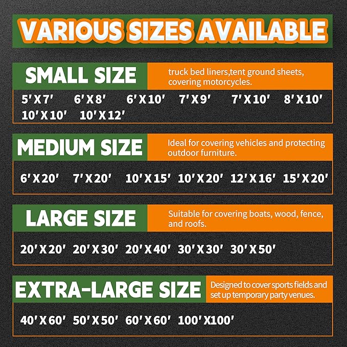 • 【MULTIPURPOSE USE】The spacing of the grommets is about 17.7 inch, which can be used as a shade sail, you can also use it to cover your camper,outside furniture, objects exposed to rain, snow and strong winds, You never know how convenience of this tarp will be