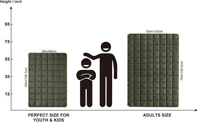 • Easy to Carry: This blanket only weights about 2 lbs. The open size is 52x75in, and the packed size is 8x14in. With a sack of the same fabric, you can easily pouch the blanket and take it anywhere you go.