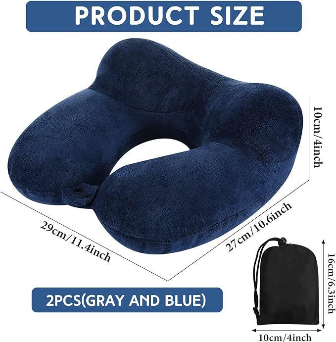 Sintuff 2 Pack Inflatable Travel Pillow for Airplanes Inflatable Neck Flight Pillows with Compact Bag and Blindfold for Traveling, Airplane, Train, Car, Office(Gray and Blue)