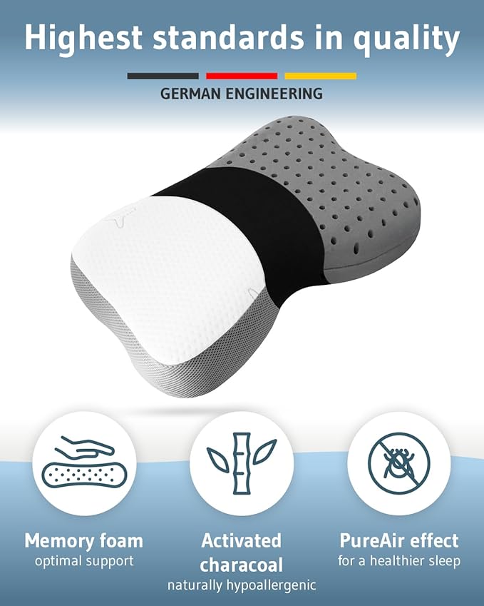 • WELLNESS CORE - The pressure-relieving memory foam effectively relieves neck pain by providing optimal support. The activated charcoal in the core regulates moisture, suppresses odors and ensures a clean, fresh sleeping climate.