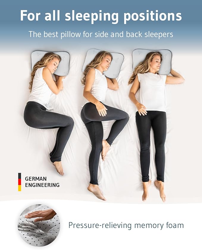• FOR EVERY SLEEPING POSITION - The innovative shape of the side sleeper pillow is perfect for all sleeping positions. Whether you sleep on your back, side or in a fetal position. Thanks to different shaping on the front, back and edges you can turn it to find the ideal position for your needs.