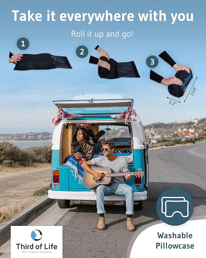 • PERFECT FOR TRAVEL - Thanks to the free travel bag, the versatile pillow can be easily rolled up and packed or used as a bolster when traveling by car, plane, train or bus. It is also ideal for hotels and camping trips.