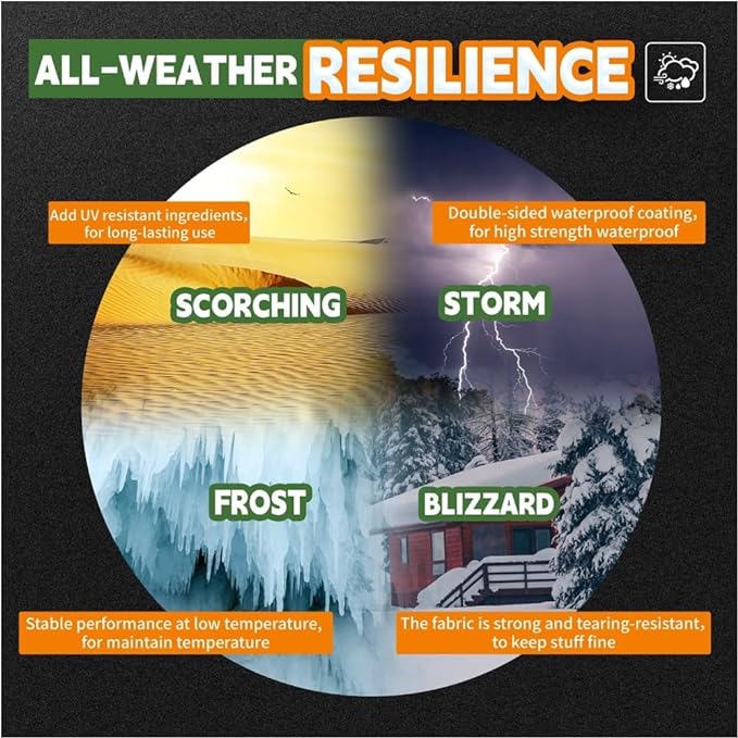 • 【MULTIPURPOSE USE】Protect your roof, truck, car, tent, pet cages, boat, or backyard pool, outdoor furniture from rain, sand, dirt, and sunlight, weather resistant. You never know how convenience of this tarp will be