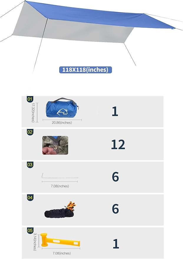 Wind Tour Portable Multifunctional Tent - Footprint, Traveling Awning, Rain Fly, Waterproof Shelter - Outdoor Camping Tarp & Sun Shelter for Hiking, Beach (118118 in)