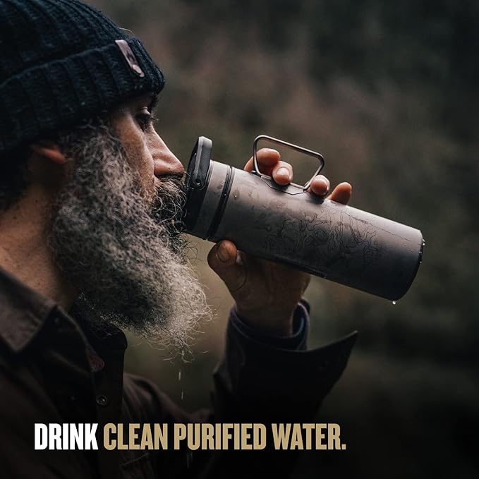 GRAYL UltraPress Titanium 16.9 oz Water Purifier & Filter Bottle for Hiking, Backpacking, Survival, Bushcraft, Travel (Coyote Brown)