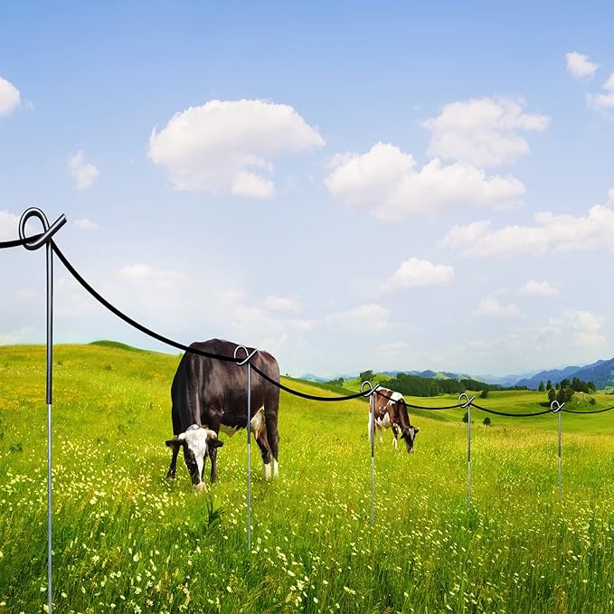 • 【Size】Our metal fence post is total length:41" long, 35" above Ground.Pack of 30, White Pig Tail Fence Post.