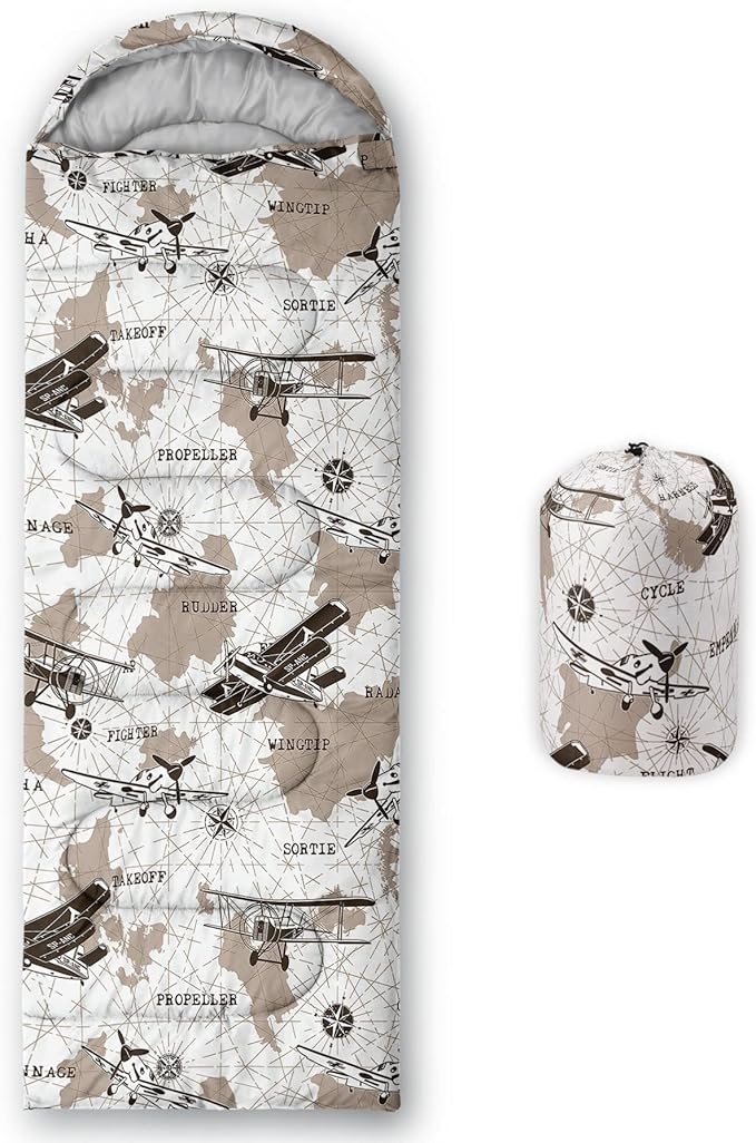• SUITABLE:The sleeping bag can be used for 3 Seasons.SIZE:90.5"L x 31.5"W Suggenal extreme temperature: 41 ℉ -77 ℉.Applicable in a variety of scenarios,such as Travel camping pajamas party,It's very suitable for you to travel with your children.Half-circle hood with adjustable drawstring,which can keep you warm and prevent your humidity