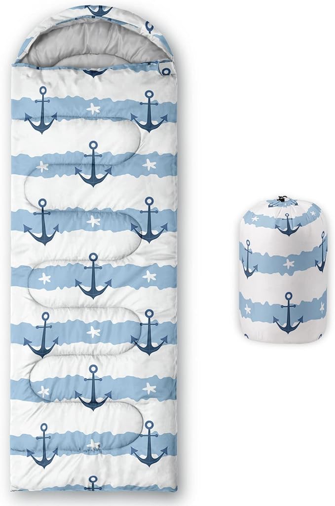 • SUITABLE:The sleeping bag can be used for 3 Seasons.SIZE:90.5"L x 31.5"W Suggenal extreme temperature: 41 ℉ -77 ℉.Applicable in a variety of scenarios,such as Travel camping pajamas party,It's very suitable for you to travel with your children.Half-circle hood with adjustable drawstring,which can keep you warm and prevent your humidity