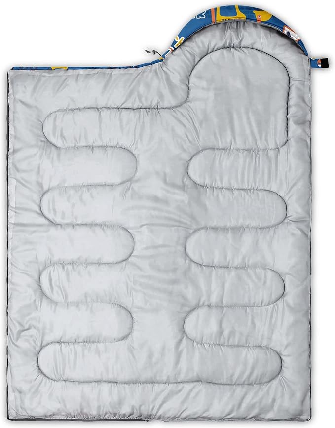 • SUITABLE:The sleeping bag can be used for 3 Seasons.SIZE:90.5"L x 31.5"W Suggenal extreme temperature: 41 ℉ -77 ℉.Applicable in a variety of scenarios,such as Travel camping pajamas party,It's very suitable for you to travel with your children.Half-circle hood with adjustable drawstring,which can keep you warm and prevent your humidity