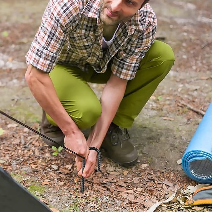 • PACKAGE INCLUDED - Set of 10 Steel rebar ground anchor stakes. Each J Hook stake is approximately 24" long; 0.47" (12mm)diameter;And hook is 5.12" (13cm) in length 2.48" (6.3cm) in diameter.The stakes has an extra-long length and a thickness that benefits, which means it can be inserted deeper and fixed more firmly.